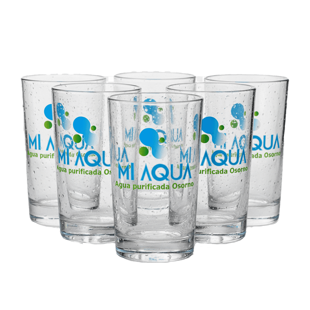 Cada vaso está personalizado con el elegante logo de MIAQUA, lo que le da un toque distintivo y moderno, representando la calidad y frescura que la marca transmite. Gracias a su diseño versátil y contemporáneo, estos vasos son perfectos para todo tipo de bebidas, desde agua, jugos hasta cócteles, y son aptos tanto para su uso diario como para ocasiones especiales.